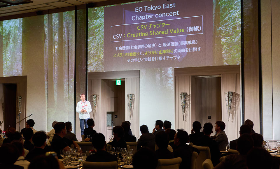 EO TOKYO EASTは、Chapter Concept を「CSV CHAPTER」 とし、企業活動を通じて社会課題の解決と自社の成長を同時に実現する“Creating Shared Value” を中核の思想に据えています。